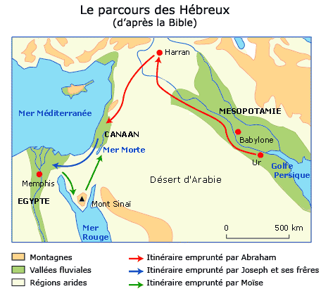 Originaires de la Basse Mésopotamie (UR), une forte sécheresse les aurait contraints, sous la conduite d’Abraham de rejoindre le pays des Hittites, puis l’Egypte où ils auraient subi un esclavage jusqu’à l’Exode qui leur aurait permis de s’installer à Canaan.